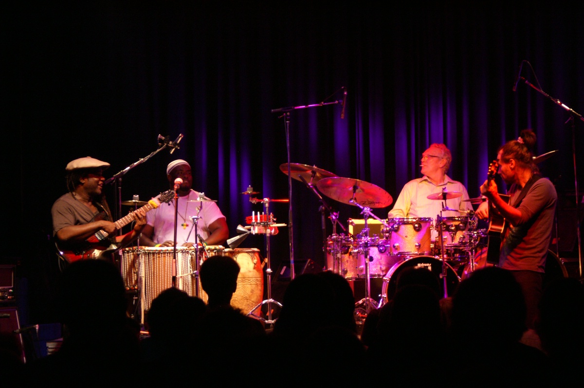 „Ich bin 72 Jahre alt. Aber ich werde mein Bestes geben“, versprach Ginger Baker bei seinem Auftritt im Kulturzentrum d‘Zuckerfabrik. Der Weltstar ist alt geworden und braucht inzwischen Hilfe, um überhaupt auf sein Schlagzeugpodest steigen zu können. Doch ist er aber einmal oben, dann geht die Post ab. Gemeinsam mit Gitarrenvirtuose Regi Wooten, Percussionist Dodoo Abass und Starbassist Jonas Hellborg lieferte er eine beeindruckende Show ab. Bei der Zugabe ließ Ginger Baker den Rockmusiker raushängen, rauchte mit coolem Blick eine Zigarette und schoss anschließend den Stummel durch die Luft. Videos vom Konzert gibts auf Youtube, Fotos gibts hier: