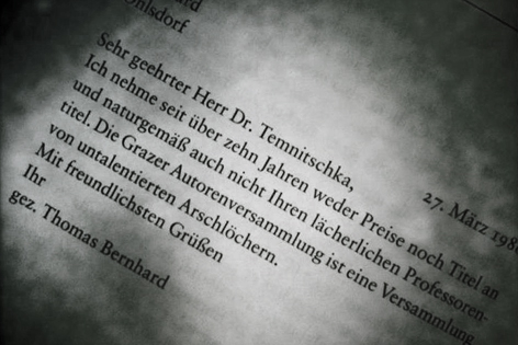 Echt oder Fake? Thomas Bernhard soll in einem Brief aus dem Jahr 1986 die Grazer Autorenversammlung als eine „Versammlung von untalentierten Arschlöchern“ bezeichnet haben. Den ganzen Text zum Nachlesen gibts hier: