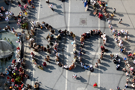 Ein schräger Anblick: Hunderte Ritter, Gaukler, Burgfräuleins, Musiker und Hexen zogen vergangenen Samstag auf den Ennser Hauptplatz. Sie bewarben noch einmal – mit viel Gebrüll und Dudelsackmusik – das angrenzende Mittelalterfest im Schlosspark. Schön, wenn man diese Inszenierung mit etwas Abstand betrachten kann. Hier ein paar Fotoimpressionen – aufgenommen vom 60 Meter hohen Ennser Stadtturm: