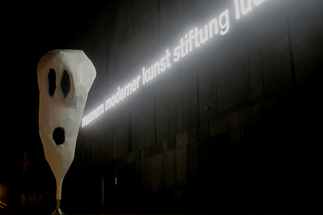 Er erinnert ein bisschen an Jack aus „The Nightmare Before Christmas“ und ist derzeit der Eyecatcher im Wiener Museumsquartier: „Der Geist“ weist auf eine aktuelle Ausstellung des österreichischen Künstlers Franz West hin, die noch kurze Zeit im Mumok zu sehen ist. Man kann übrigens wunderbar den eigenen Kopf in seinen Mund stecken und dabei einen Blick in das Innere des Geistes werfen. =)