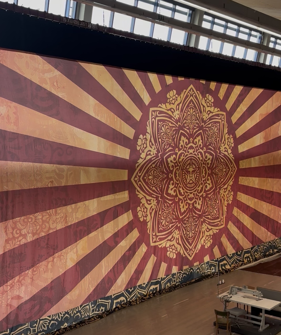 18 Meter breit, 9 Meter hoch: Shepard Faireys Hitzelandschaft („Heatscape“) hängt aktuell in den Dekorationswerkstätten von „Art for Art“ im Arsenal.