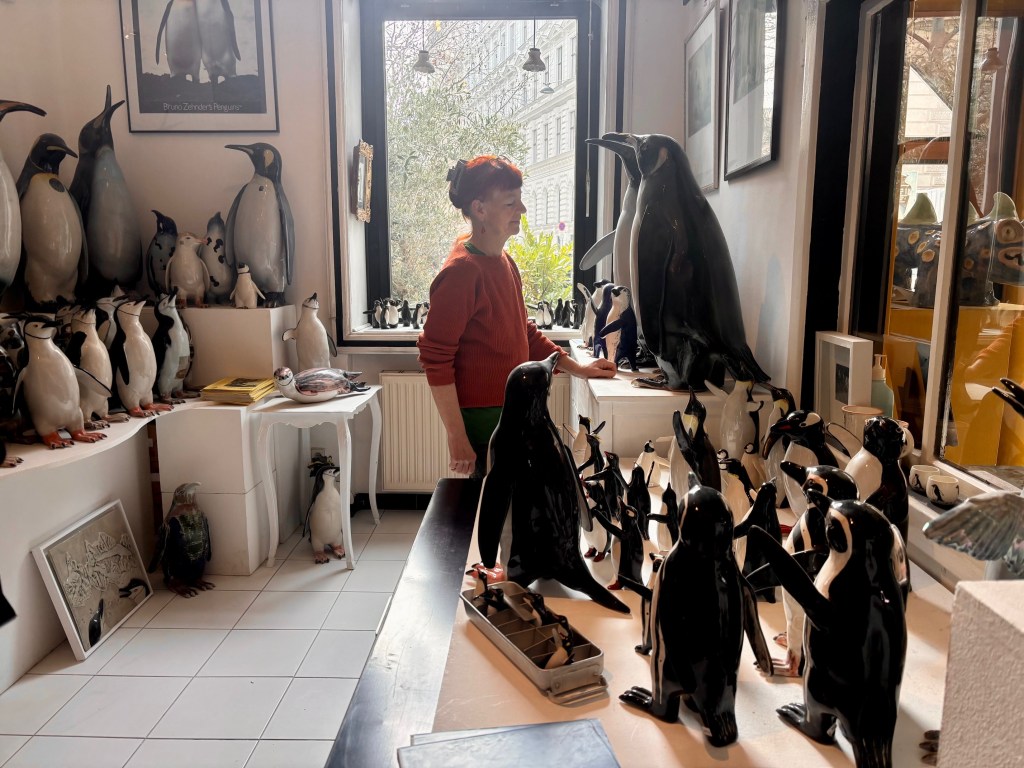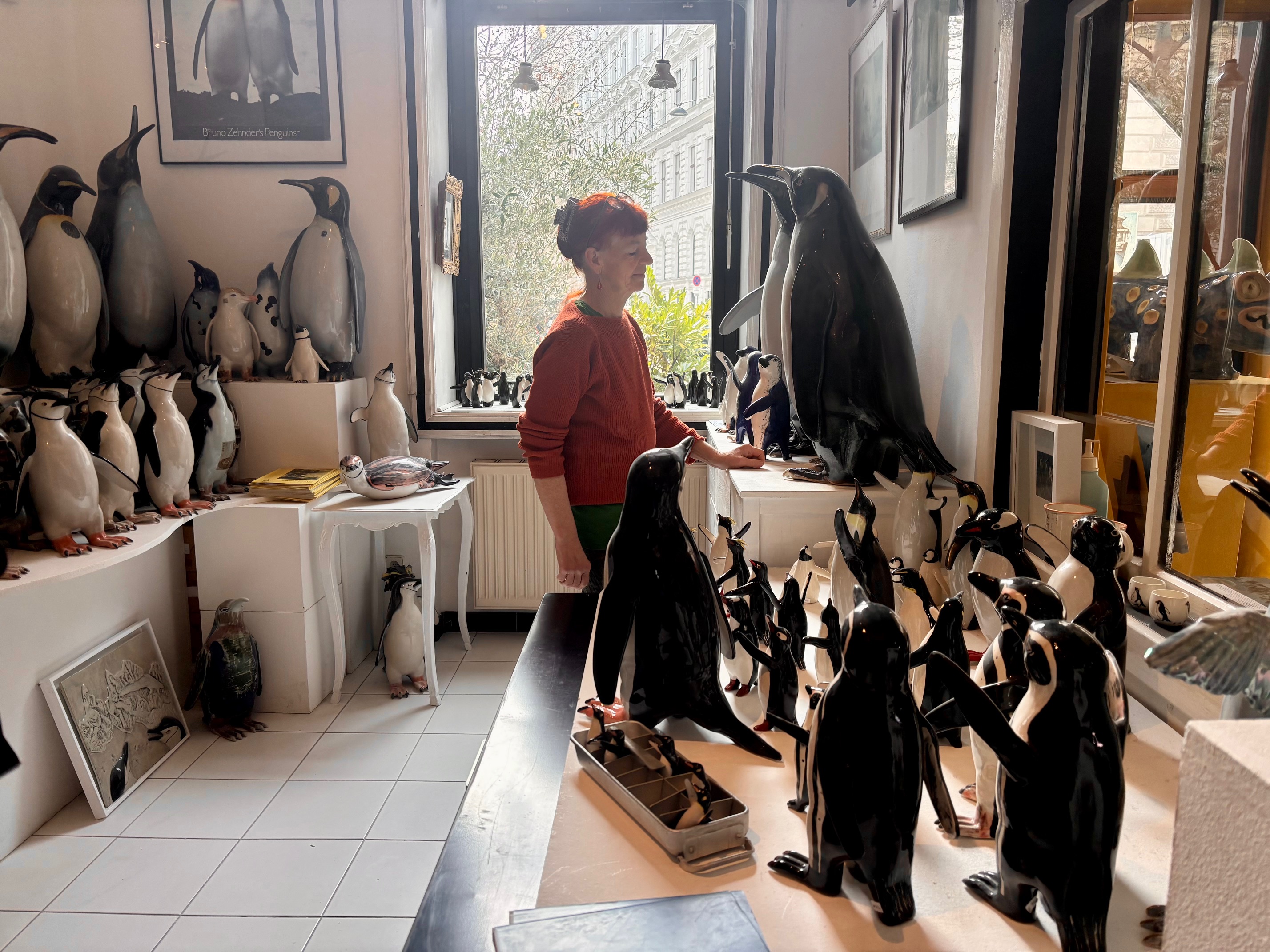 Sabine Berchtold betreibt eine Pinguinfabrik in Wien. Seit 35 Jahren stellt die Künstlerin in der Berggasse Pinguine aus Keramik her: „Nachdem sie nicht alleine leben können, müssen es viele sein.“ Rund 5.000 Pinguine haben die Fabrik schon verlassen.