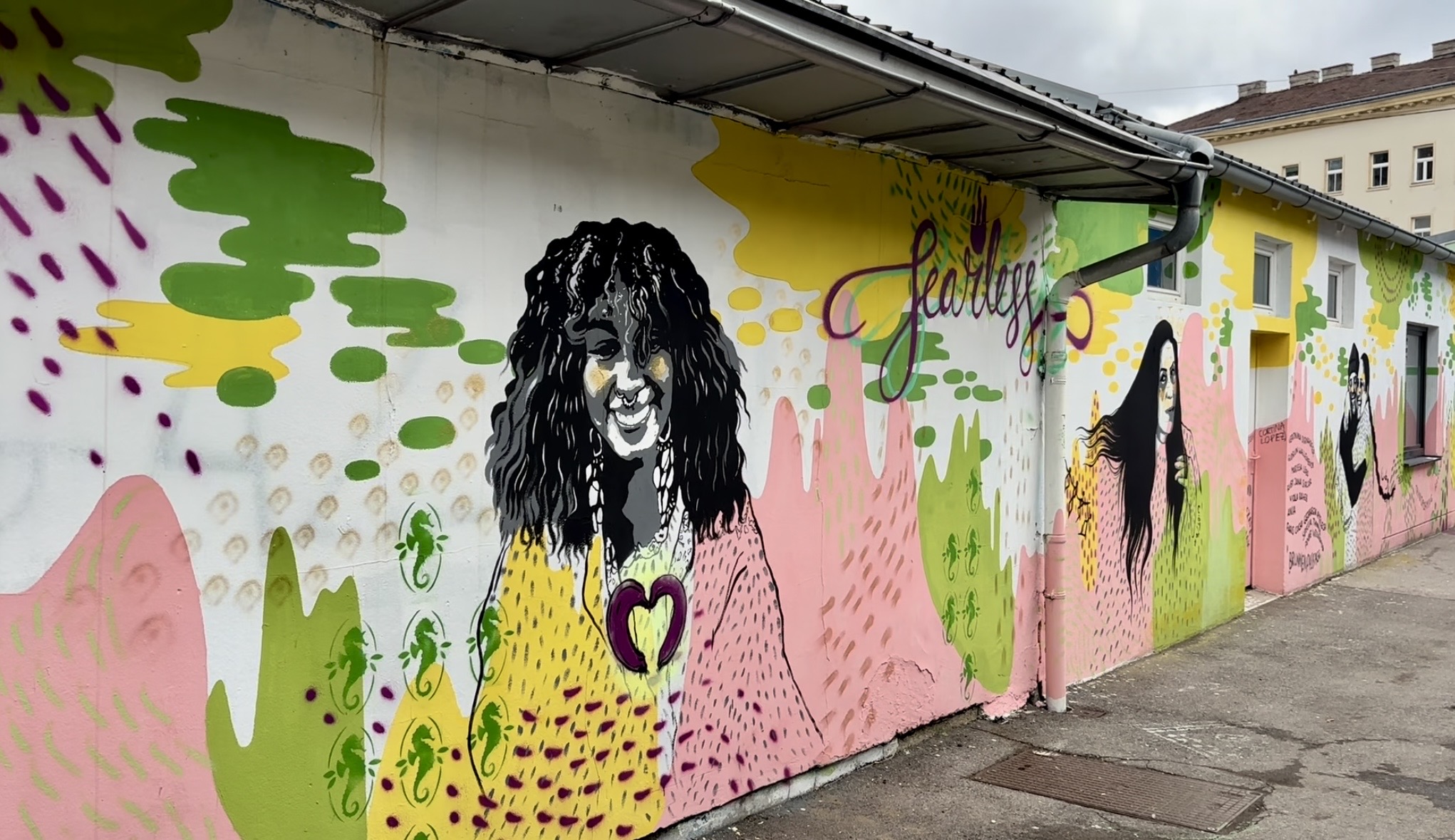 Sieben Street-Art-Porträts von Frauen und Flinta sind aktuell bei der Brunnenpassage am Yppenplatz zu sehen. Die Kunstwerke sind auf Einladung von Negin Rezaie bei einem „Fearless Collective“-Workshop gemalt worden – als Botschafterinnen für Mut und Gerechtigkeit.
