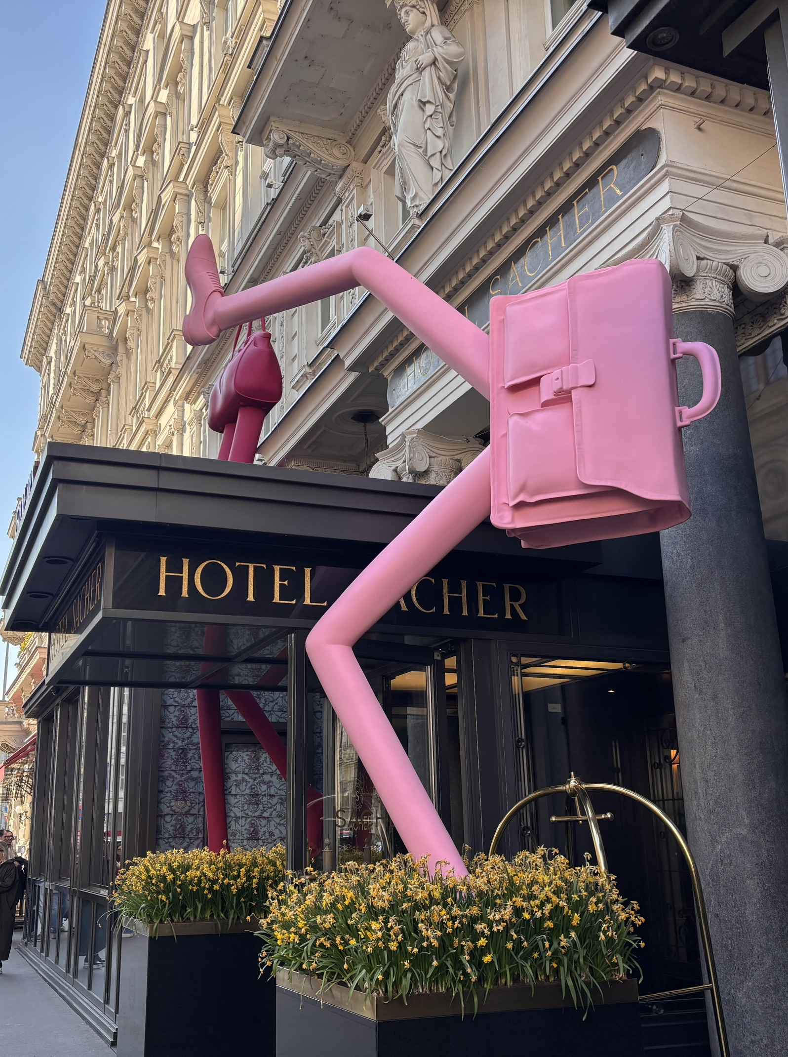 Mit zwei Skulpturen von Erwin Wurm feiert das Wiener Hotel Sacher sein 150. Jubiläum. „Eine kostbare Ladys Bag und eine seriöse Herren-Aktentasche