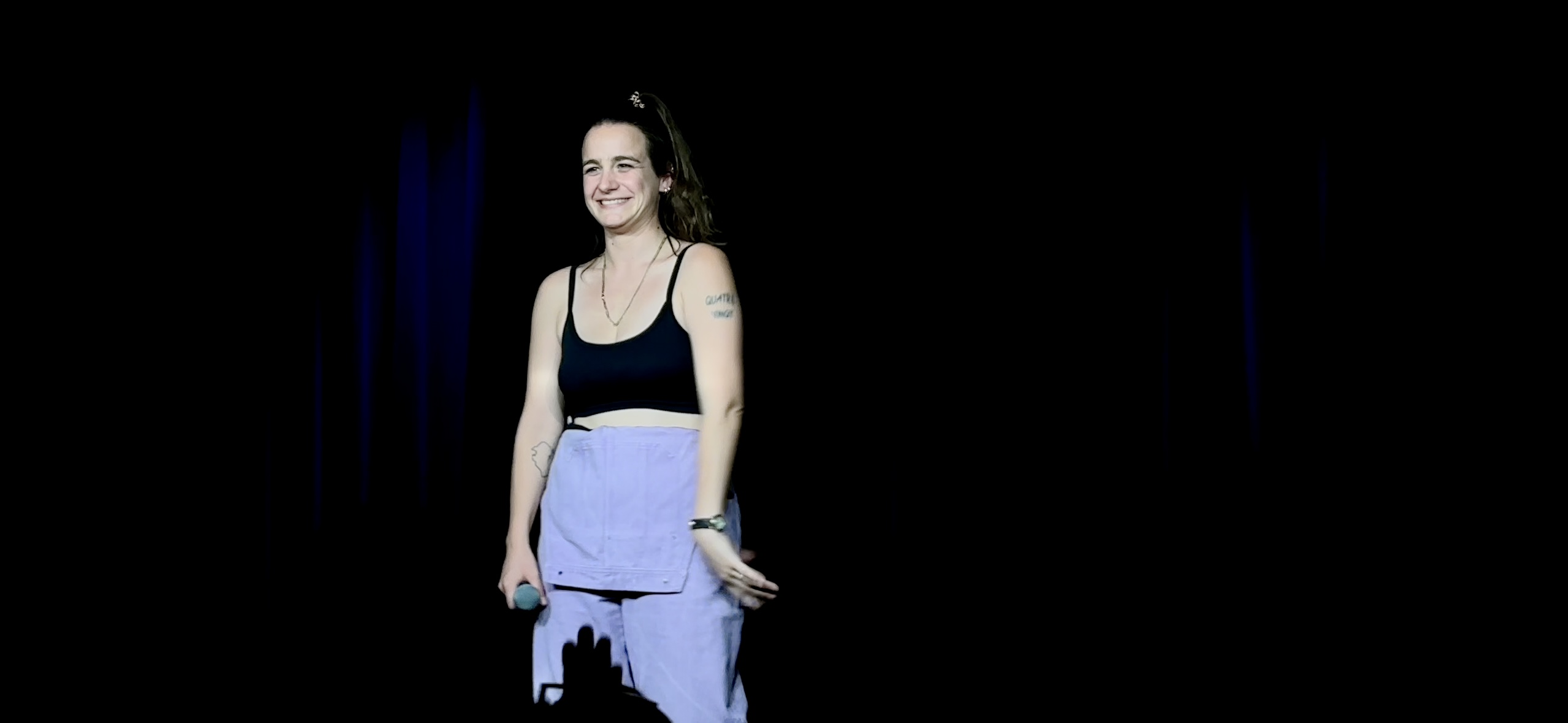 In meiner Arbeit als Trainerin und Coach stehe ich ja auch vor Leuten und erzähle etwas – aber immer ein wenig „gefiltert“, mit einer professionellen Haltung, mit Empathie, mit Fokus auf die Klient:innen. Auf der Bühne kann ich viel „egoistischer“ sein. Da geht’s mir in erster Linie darum, dass es mir gut geht, dass ich Freude habe. Und je mehr ich darauf achte, dass es für mich passt, umso mehr hören die Menschen zu und sind auch bewegt von dem, was ich sage. Dann haben alle was davon. Das macht es für mich aus.