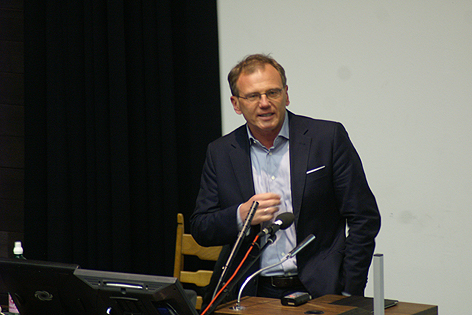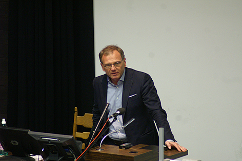Im Anschluss an seinen unterhaltsamen sowie spannenden Vortrag, beantwortete Wolf gedulig Fragen von Studierenden und Selbstdarstellern. Zwei Vorlesungen mit Wolf wird es in den nächsten Wochen noch geben. Einmal geht es um Live-Interviews, einmal darum, welche Aufgabe Journalisten künftig erfüllen sollen.