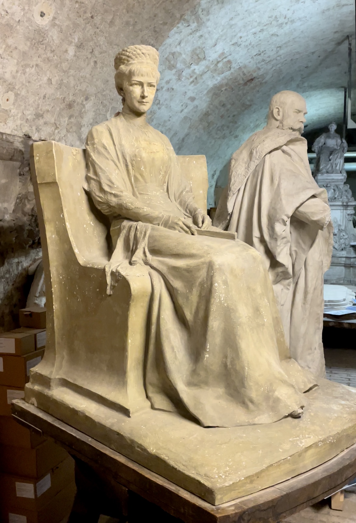 Wenige Meter weiter bewahrt die Burghauptmannschaft rund 2.000 beeindruckende Gipsmodelle auf – von Fassadenelementen, Schlusssteinen und Denkmälern, die an der Ringstraße stehen. Muss eine Statue saniert werden, kann das Originalmodell des Künstlers aus dieser Sammlung herangezogen werden.