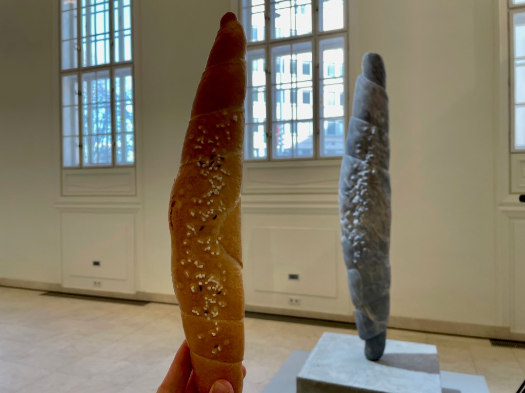 Würstel, Gurkerl und Salzstangerl – Erwin Wurm zeigt im Kleinen Haus der Kunst riesige Skulpturen aus Stein, die Fragen aufwerfen. Zum Beispiel, ob er die alle selbst gemacht hat. „Schauen Sie mich an. Ich hab das in Auftrag gegeben“, antwortet der Künstler lächelnd. „Wir haben die Formen entschieden und scannen lassen. Und dann haben wir es nach Italien nach Carrara geschickt. Ich hab mühsam in wochenlanger Arbeit die Steine ausgesucht, war immer bei der Arbeit und Kontrolle dabei – aber selbst hab ich nichts gemacht.“ Die beeindruckenden Stein-Kunstwerke können jedenfalls nicht nur besichtigt, sondern auch gekauft werden. Nur – die Preise liegen im fünf- bis sechsstelligen Bereich.