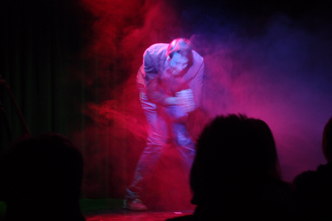 Eine effektvolle Materialschlacht auf der sonst eher schlichten Kleinkunstbühne
