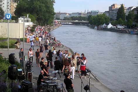 Drei Tage lang spielen zahlreiche Bands und DJs entlang des Donaukanals. Vor wenigen Tagen bestand hier noch akute Hochwassergefahr.
