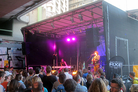 „Sonnenschein und Party“ statt „Hochwasser und Regenwetter“: Das Wiener „Donaukanaltreiben“-Festival darf sich dieses Wochenende über Traumbedingungen freuen. Subjektiver Höhepunkt des heutigen Tages war das Popduo „Keiner mag Faustmann“ auf der Bühne neben dem Adria-Café. Die Band wurde durch ihren Sommerhit „Wien-Berlin“ bekannt. Kürzlich gaben sie ein Konzert im RadioCafe. Hier der Livemitschnitt. Morgen stehen „Heinz aus Wien“ und „Dirk Stermann“ am Programm.