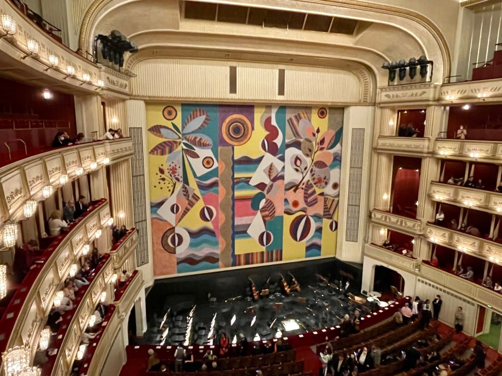 „Es ist weder ein Vorhang, noch ist er eisern.“ Mit dieser Klarstellung eröffnete Direktor Bogdan Roscic die Präsentation des Eisernen Vorhangs für die neue Saison in der Wiener Staatsoper. Seit 27 Jahren wird die originale Brandschutzwand mit zeitgenössischer Kunst überdeckt. Heuer hat Pipilotti Rist das Großbild für die Initiative „museum in progress“ gestaltet. Die Schweizer Videokünstlerin widmet „Bauchhöhle überfliegt Staumauer“ ihrem Vater, „der immer am Stehplatz in der Oper war“. Über den farbenfrohen Stausee zwischen Bühne und Publikum sagt sie: „Geistige Energie schwappt in den Raum, aber man wird nicht nass.“ Direktor Bogdan Roscic meinte geschäftstüchtig, dass man am Abend kommen müsse, um die Arbeit zu verstehen. Und fügte schmunzelnd hinzu: „Wenn die Energie vom Publikum frei wird. Wenn Sie Pech haben auch olfaktorisch.“