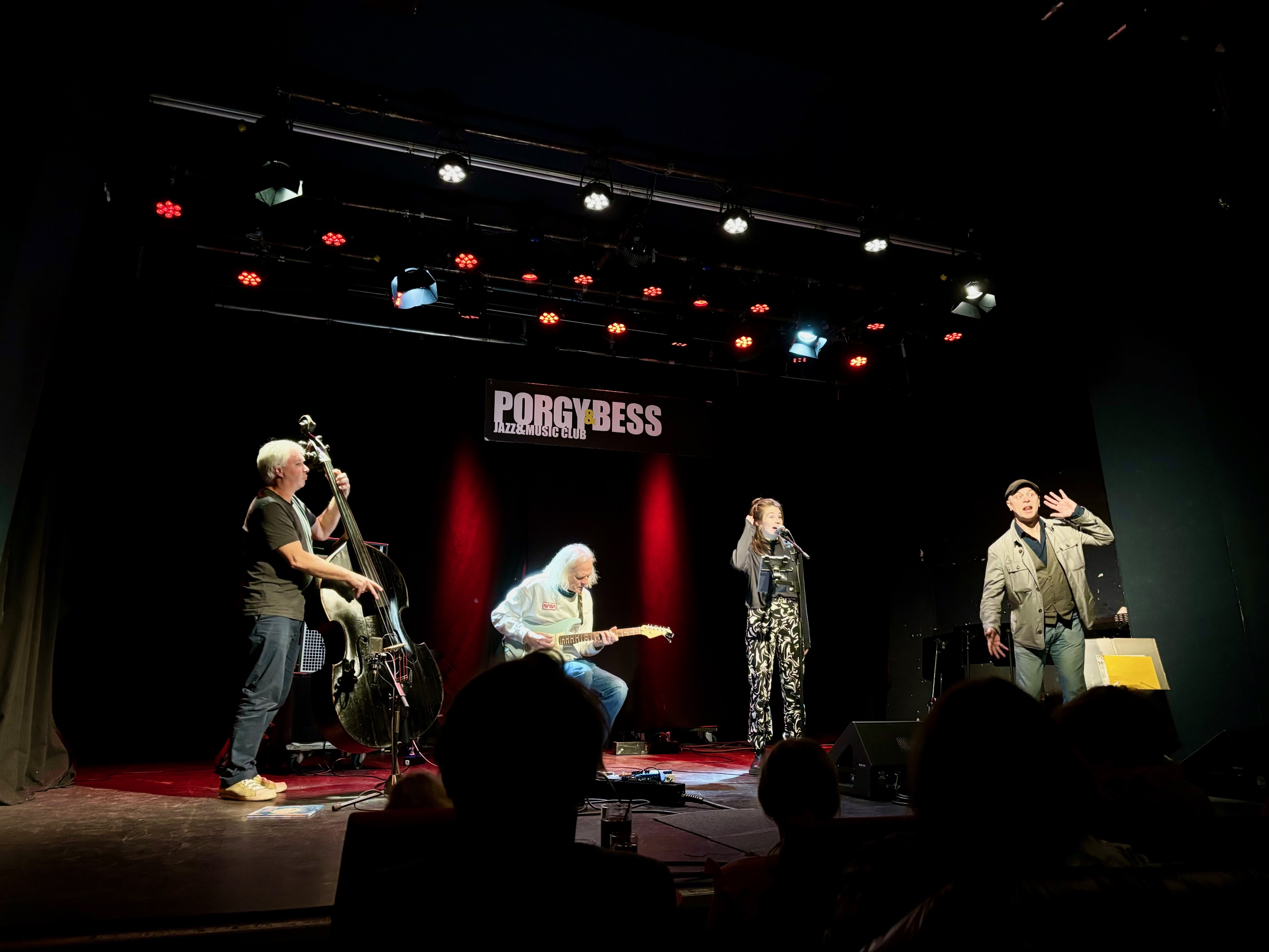 Ein Jazzclub voller Kinder! Die großartige Jakob Pocket Band gibt an Nachmittagen Kinderkonzerte im Wiener Porgy & Bess. Diesen Sonntag waren verjazzte Kinderlieder von „Bruder Jakob“, „Auf der Mauer, auf der Lauer“ bis „Ein Männlein steht im Walde“ zu hören. Erzähler Helmut Schuster improvisiert eine Geschichte drumherum.