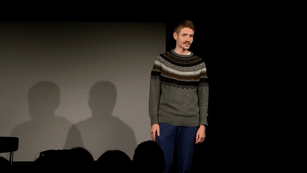 Golatschengesicht, Hirngriller, ausgschwabter Donaufetzen: Mathias Novovesky hat mit „Bildnis eines mittleren Charakters“ ein Kabarettprogramm geschaffen, das wienerischer nicht sein könnte. Er spielt einen jungen, grantigen Wiener, der keine Menschen und schon gar keine Kinder mag. Vielleicht auch deshalb, weil seine Eltern Pompfüneberer sind. „Das Wiener Wort für Bestatter. Ein sterbendes Wort.“ Um Geld zu sparen, hat sein Vater früher Kreuze und Jesus-Figuren seperat gekauft und dann vor jedem Begräbnis selbst zusammengenagelt. „Ein Zwei-Komponenten-Set. Da war das Kruzifix eher ein Kruzi-nunedsoganz-fix.“