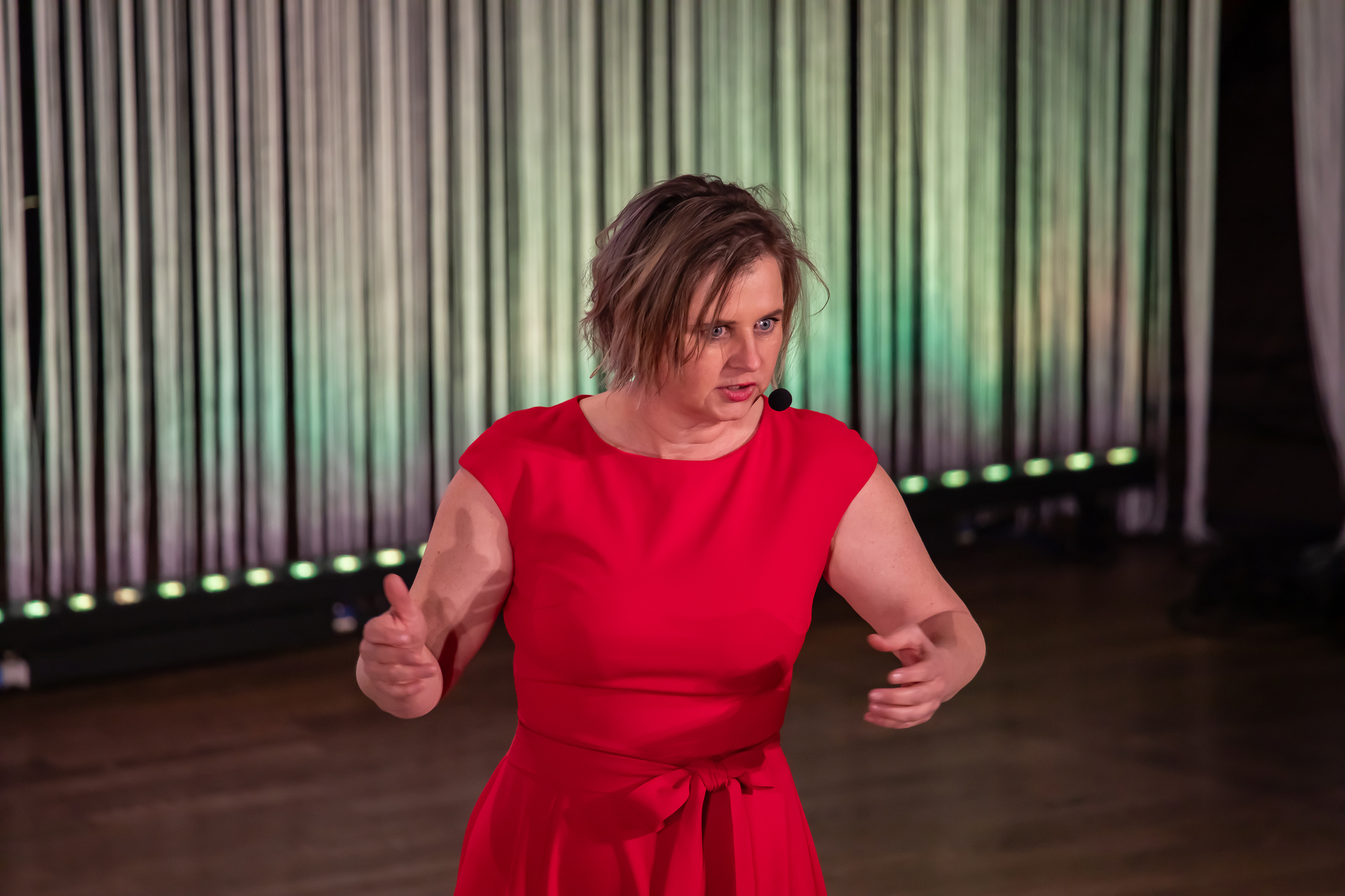 In meiner Arbeit als Trainerin und Coach stehe ich ja auch vor Leuten und erzähle etwas – aber immer ein wenig „gefiltert“, mit einer professionellen Haltung, mit Empathie, mit Fokus auf die Klient:innen. Auf der Bühne kann ich viel „egoistischer“ sein. Da geht’s mir in erster Linie darum, dass es mir gut geht, dass ich Freude habe. Und je mehr ich darauf achte, dass es für mich passt, umso mehr hören die Menschen zu und sind auch bewegt von dem, was ich sage. Dann haben alle was davon. Das macht es für mich aus.