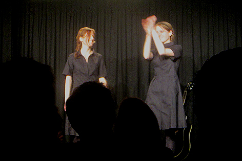 Sie nehmen Klarinette, Akkordeon und Lachsbrötchen zur Hand – und schwimmen synchron durch den Pädagogik- und Pfegebereich („Mir geht die Luft aus“). Sie tragen Mikrodramen vor – etwa zum Thema Artensterben („Auster-Traum“) und zeigen auf, wo Kinder abstürzen („Schaukel, Fenster, Mittelstand“). Vom Geflügel-Charity-Clubbing („Ente gut, alles gut“), einer solistisch virtuos vorgetragenen US-Hymne für Celebreties im Gailtal („Sie waren da, der Winter nicht“) bis zum Gemeinschafts-Pop-Projekt „Austria for heritage“ („Wenn der Nachlass nachlässt“) – RaDeschnig geben für ihr Publikum alles!