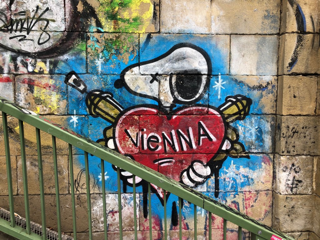 Schwarze Wand statt bunten Graffitis zwischen Salztor- und Marienbrücke.Eine urbane Legende: „Schleich di, du Oaschloch!“Sogar Snoopy trauert mit Wien am Donaukanal
