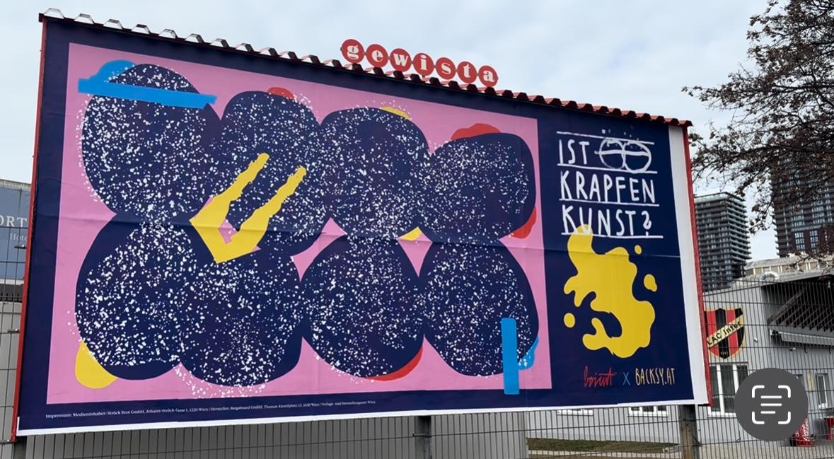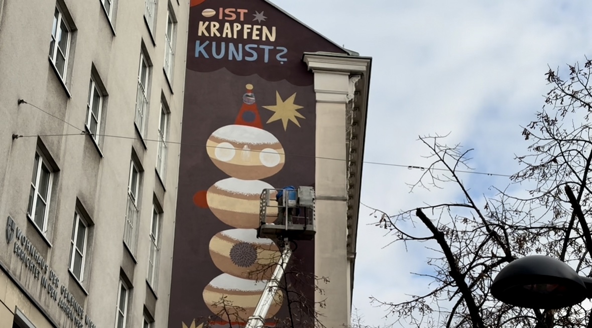 In Wien läuft gerade eine Werbekampagne mit dem Slogan „Ist Krapfen Kunst“. Dafür wurden österreichische Künstlerinnen und Künstler eingeladen – wie Frau Isa und Boicut – das Stadtbild zu verschönern. Zusätzlich werden am Faschingsdienstag im Kunstforum Wien Krapfen-Kunstwerke zugunsten der WE/ME-Foundation versteigert.