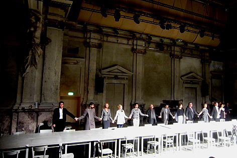 Da nicht chronologisch erzählt wird, wird bei jeder Szene die entsprechende Seitenzahl des Buches eingeblendet. Wenn französisch oder russisch gesprochen wird, dann gibt es Untertitel. Um die letzten 500 Seiten des Buches auch noch unterzubringen, erzählen die Schauspielern am Ende des Abends dem Publikum den Fortgang ihrer Charaktere. Auch während dieser Erzählungen wird gespielt. Fazit: Selten sind viereinhalb Stunden so schnell vergangen. Diese Produktion zeigt, wie Theater im 21. Jahrhundert funktionieren kann – und darf extrem empfohlen werden!